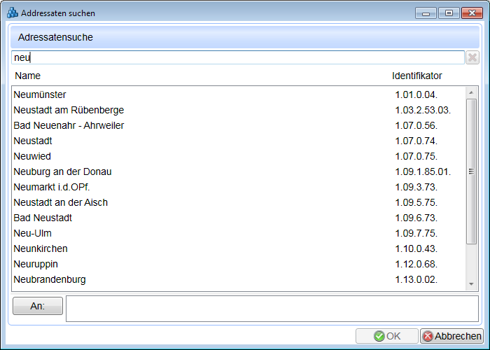 Es öffnet sich das Fenster zur Adressaten-Suche: