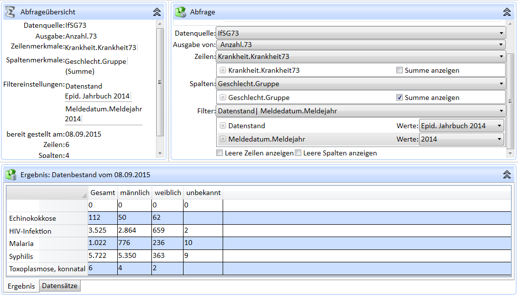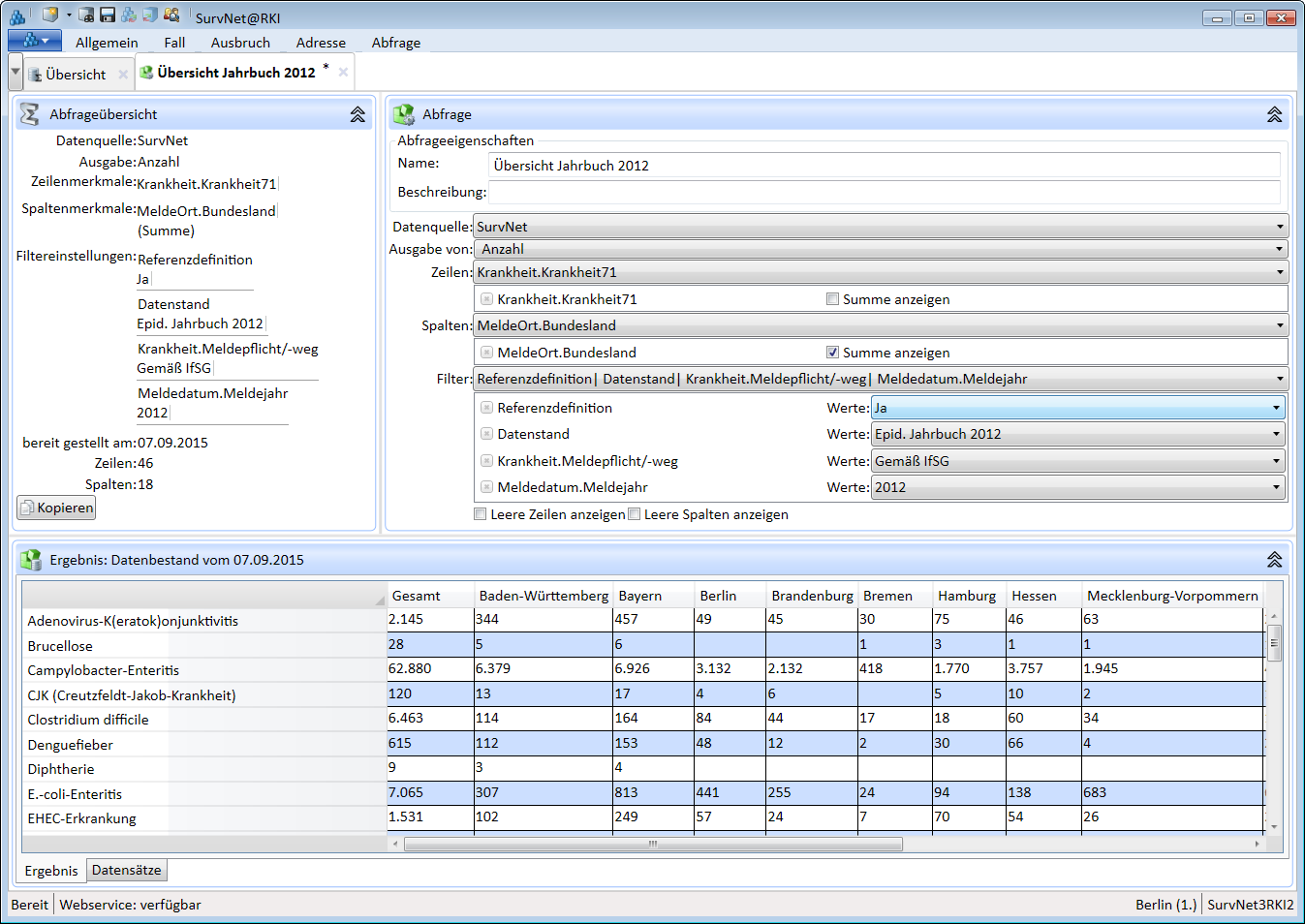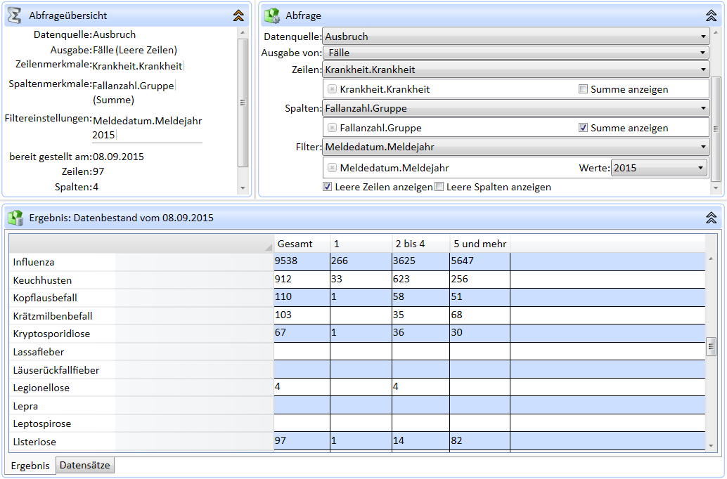 Nach Ausführen einer SurvStat-Abfrage über die Schaltfläche