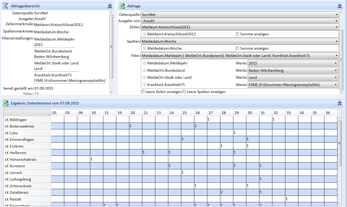 < MeldeOrt.Stadt oder Land > aus undlegen Sie für die Merkmale als Werte <2015>, < Frühsommer-Meningoenzephalitis >,