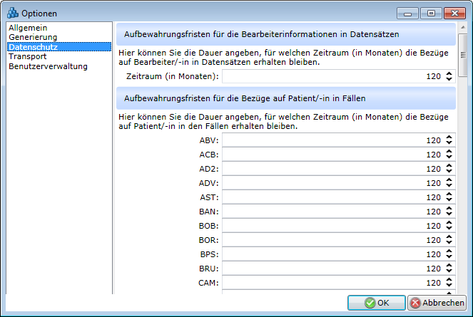 Löschen von personenbezogenen Daten von einem autorisierten Bearbeiter -systemeinstellung betätigt, werden alle Patientenbezüge, die über dem festgelegten Zeitraum liegen, gelöscht.