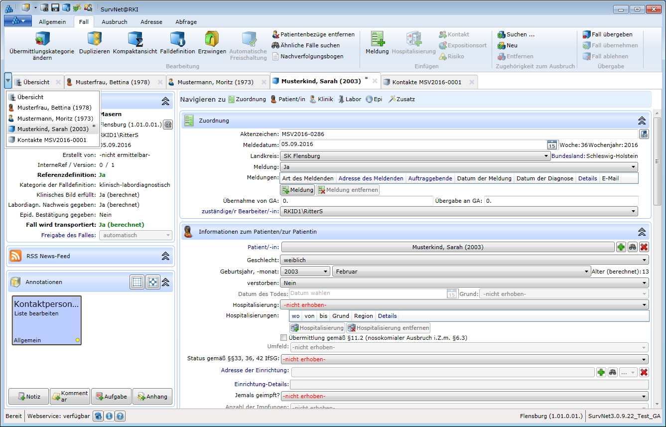 Ihre Aufgabe: 1. Login in SurvNet mit Ihren Zugangsdaten 2. Startansicht → Gehen Sie zum Register “Neue Fälle” 3. Fall öffnen → Doppelklick auf den neuesten Eintrag 4. Orientierung → Finden Sie die Fallübersicht im geöffneten Fall-Datenblatt