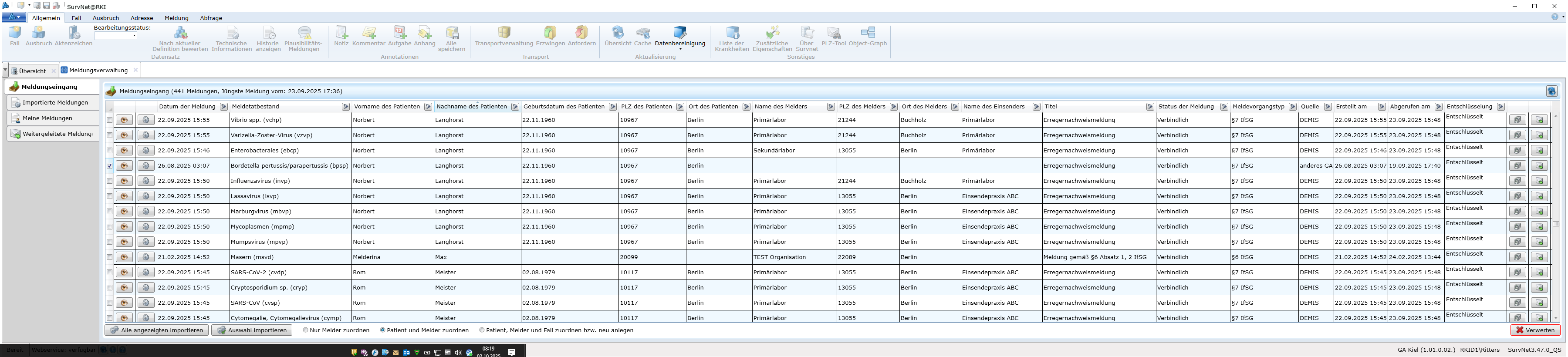 - Patient, Melder und Fall zuordnen bzw. neu anlegen