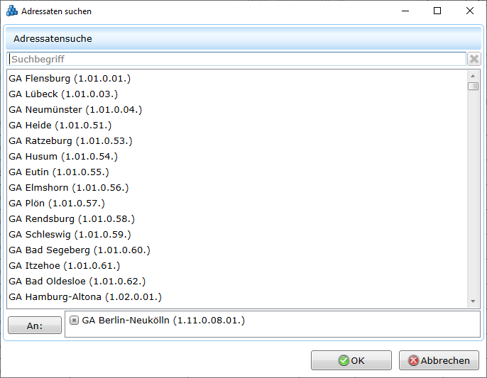 Meldung weiterleitenEs öffnet sich die Adressatensuche: