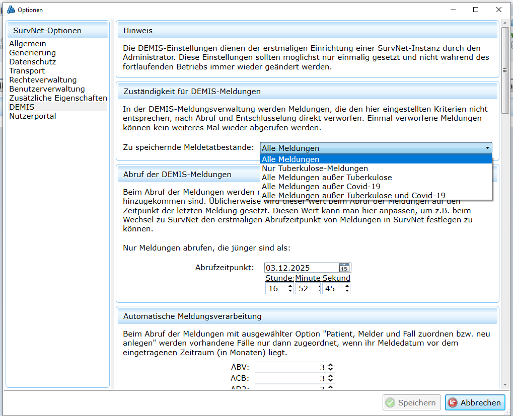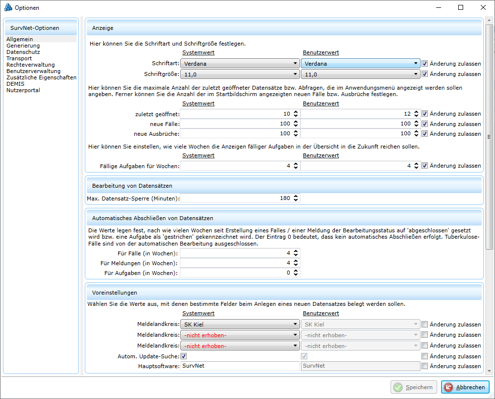 44.8 SurvNet-Optionen – DEMIS (Administratoransicht)
