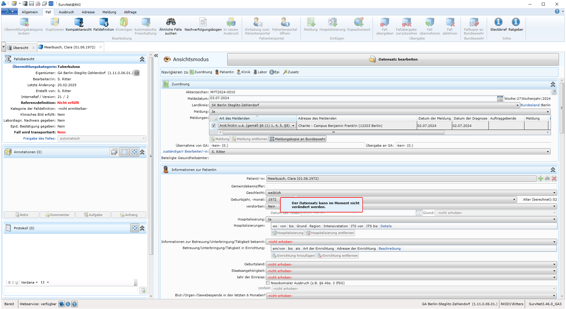 - Prüfen, ob bereits ein Fall existiert.
